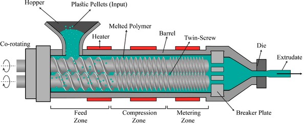 In Parallel Twin Screw, the diffusion effect between material molecules also plays an important mixing role. The rotation of the screw and the special design of the thread form a high shear and high turbulence environment in the screw groove, which accelerates the diffusion speed between material molecules and improves the mixing effect.